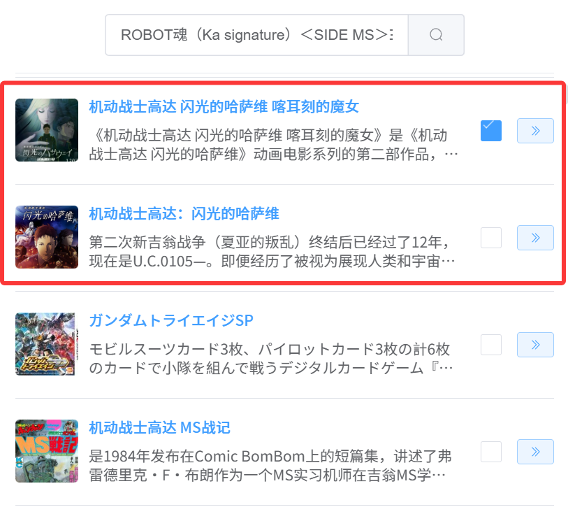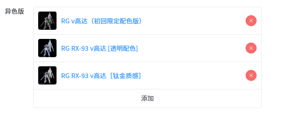 4.来源作品:关联作品需注意多作品(例如闪光的哈萨维)出场的机体,一般产品介绍或名称中含有作品,注意正确关联产品所属作品。
