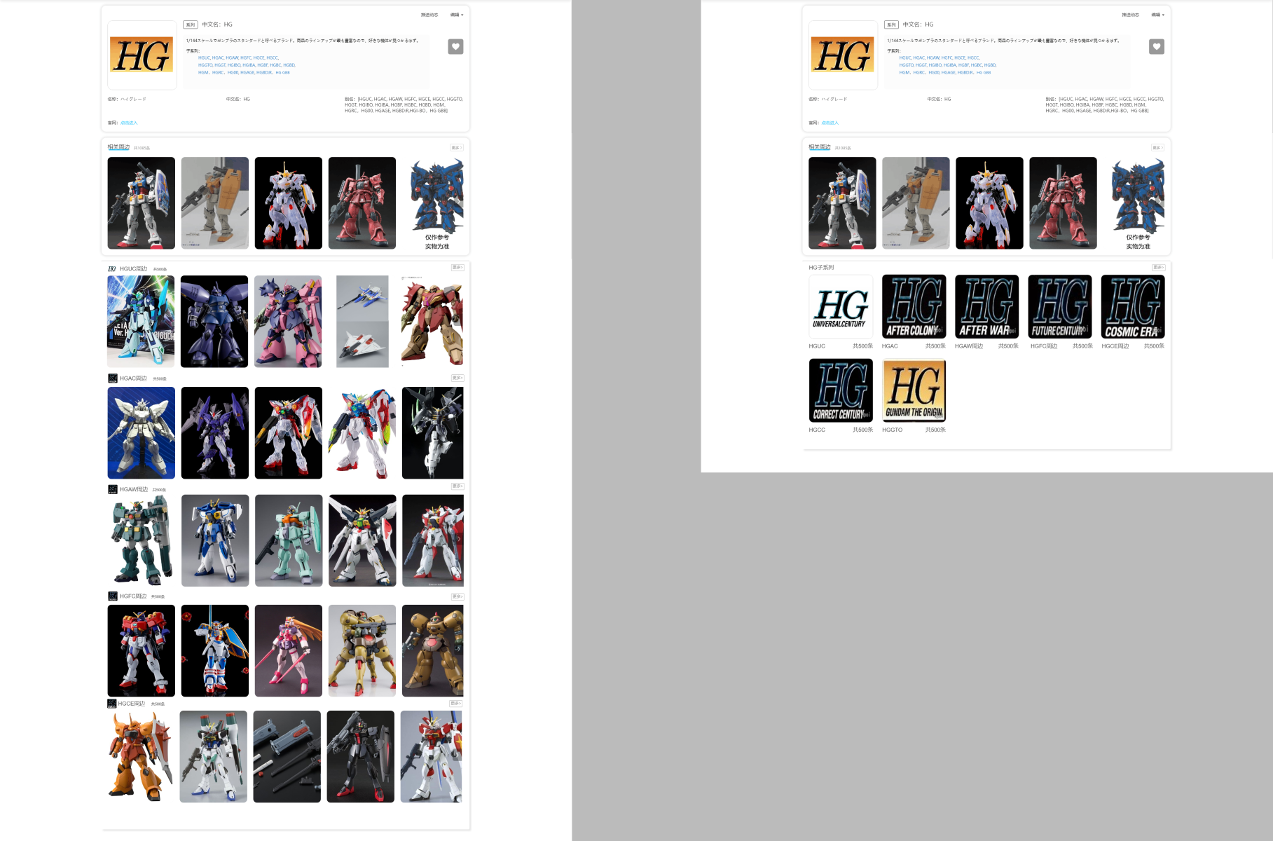 例如HG00、HGGTO等子系列将可以在HG系列下展示