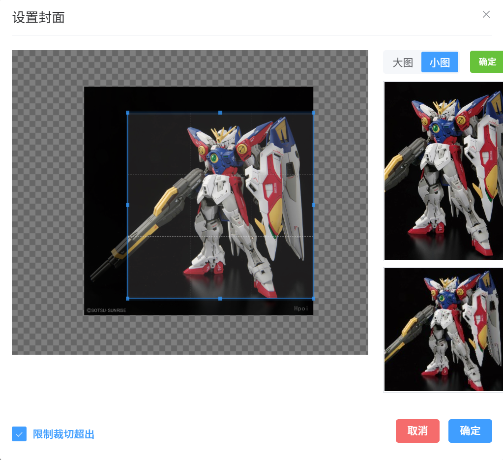 9. 封面设置:产品封面的大小图均需裁剪完整的主体形象,主体形象位于封面中间位置,提升整体辨识度,分别完成封面大图、小图的裁切设置。