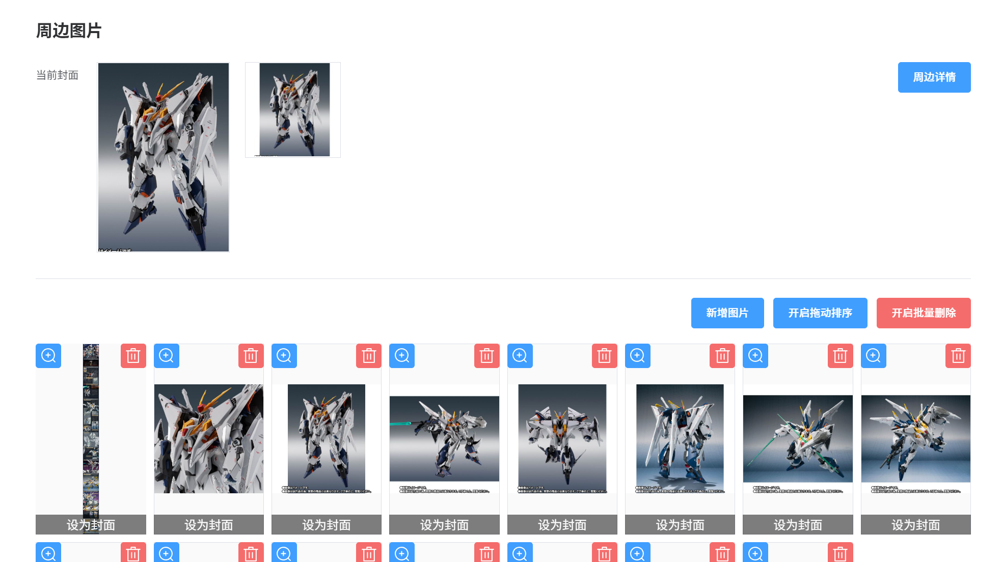 ③上传完成后的周边图片,可以拖动排序、删除、重新设置封面。