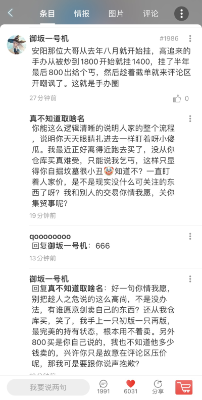 挂的就是你,私信骂街拉黑你咋了 天天住在评论区,高强度乞讨,1300,1320,1400,反正总要比闲鱼价低~; 收不到就“手感漆,半年掉半价”,“屁股削了没”,超好笑诶