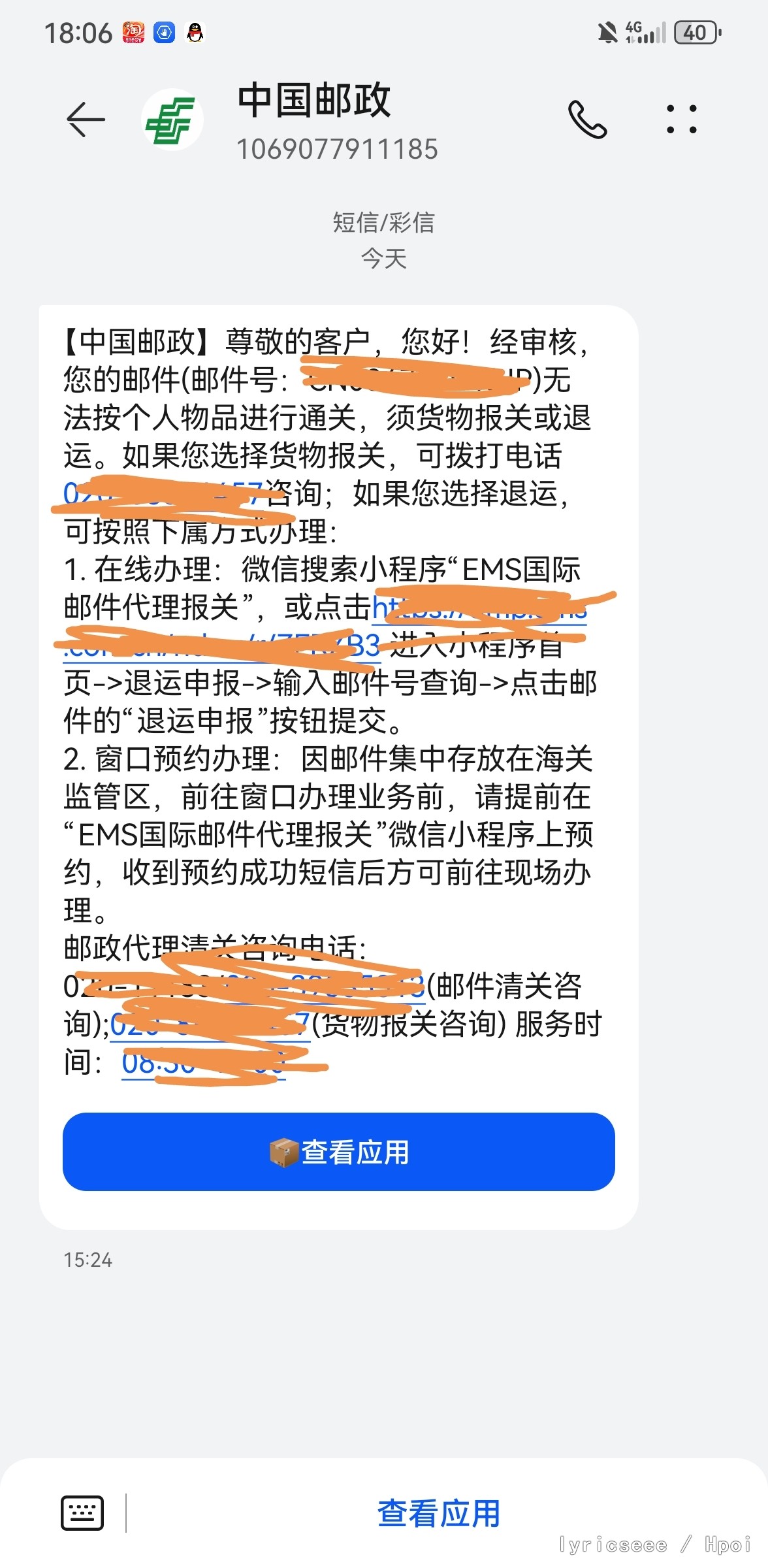 购买了十件物品,零零散散花费1500左右。本以为实际报关只需要交禾兑即可,没想到惨遭被查。只能选择货物报关或者退运。刚开始本来想尝试货物报关,但是去打听了一圈,价格最便宜的也需要400手续费+200仓储费+300税费。东西不急要,所以选择退运重发。之前也寄过2000多R的包裹,但是可能因为数量少,只是交税就能通过。这次大概因为谷子买太多了,不属于自用范畴。所以大家邮寄的时候一定要注意数量ww 如果成功收到了再更新吧