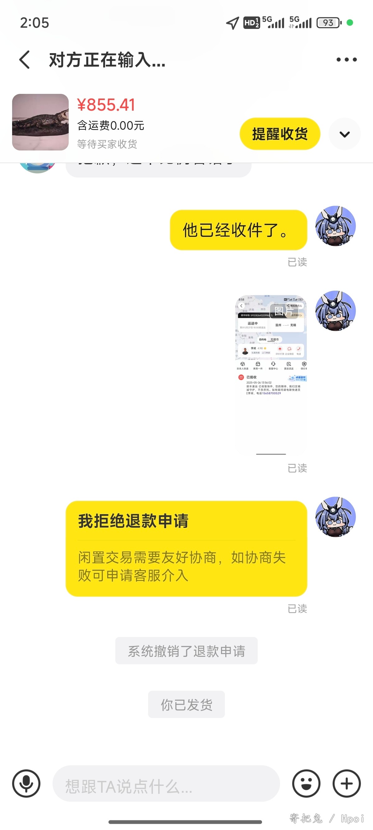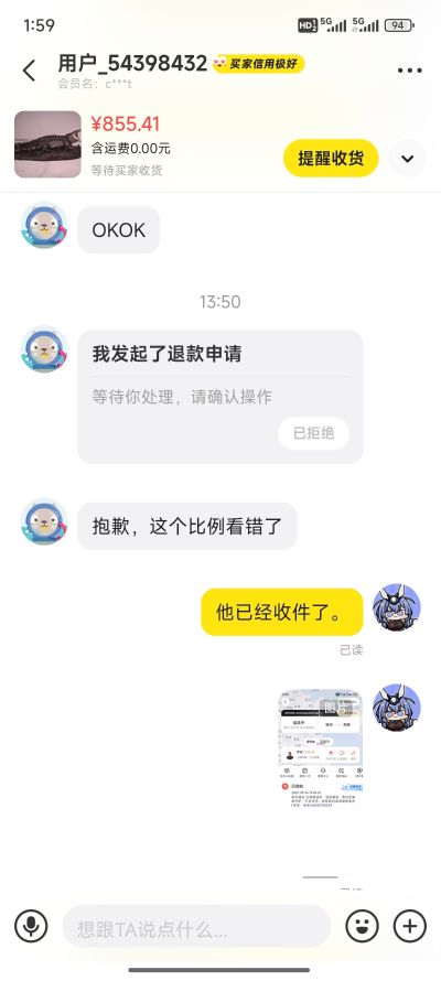 他之前在我这买的,然后50的时候顺丰快递来我这收,我在处理点东西点开信息,结果他说不要了,看错了,我在简介那就说了,拒绝售后