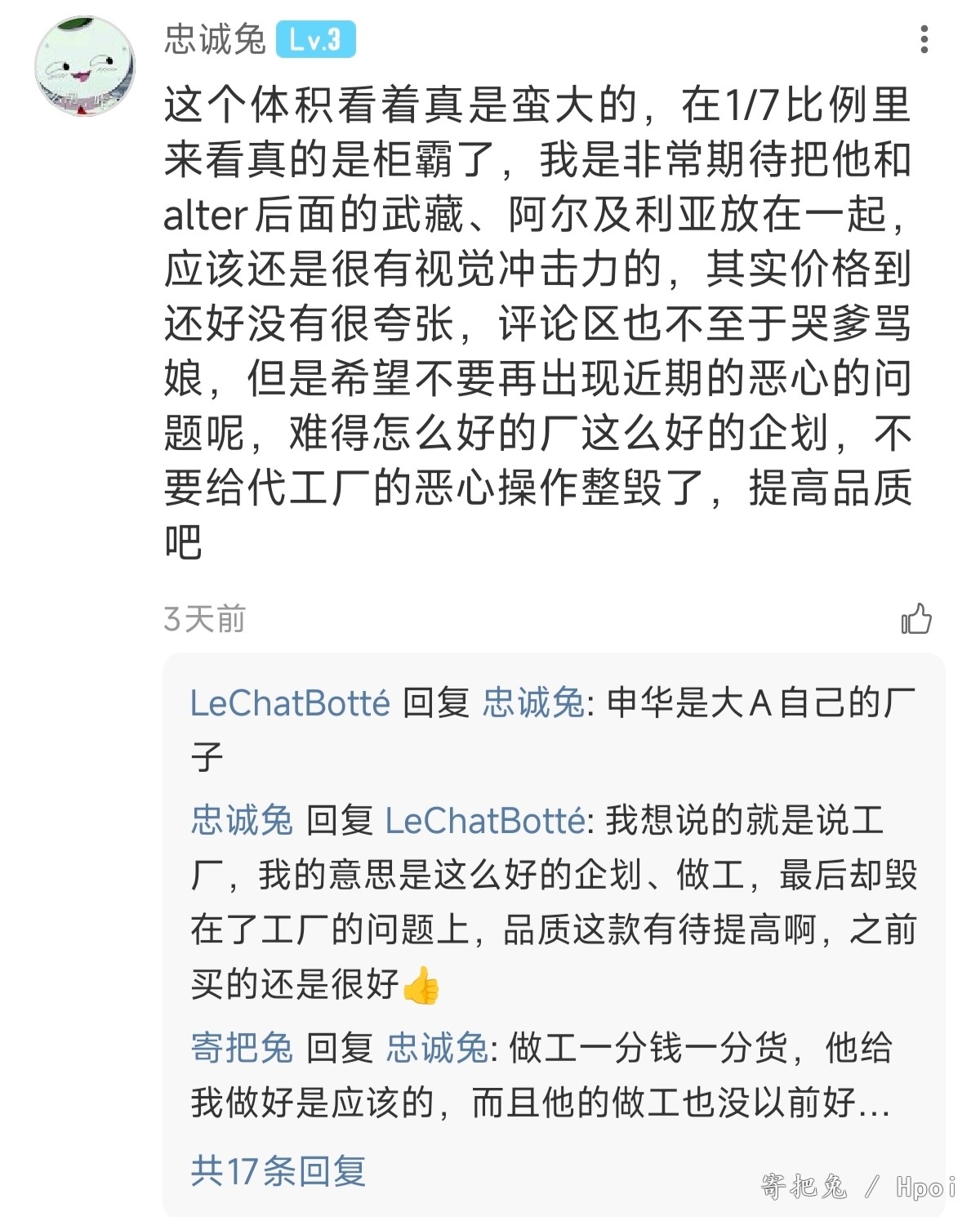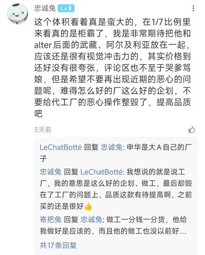 《难得那么好的厂》《重装按四五千卖也行,又不是买不起》 狗A 卖的越来越贵,品质倒是没上去多少,经常延期,售后诗人,坑自己人舔太君,原来是好厂啊 挂别人,结果还有自己网暴自己的,发现没人帮说话,光速删帖 一口一个穷曲 这就是手办买多带来的自信,这就是自豪️这就是忠诚️