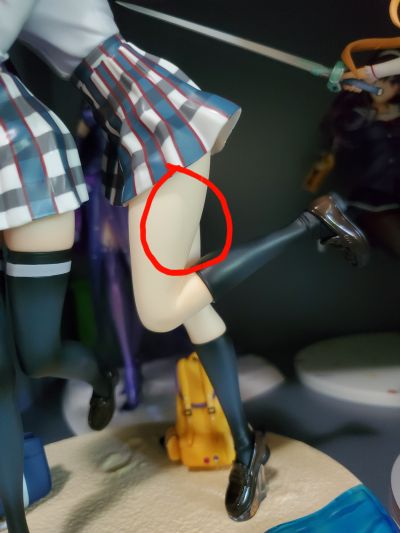 这款造型还有脸是真的好看,但是瑕疵是真的超级多,小黑点也就忍了,关键是这头发掉漆,腿上那边有两三条白色的像漆一样的东西,相机不好照,实物看很明显,然后你们看看团子头发那边的缝隙也是拉胯