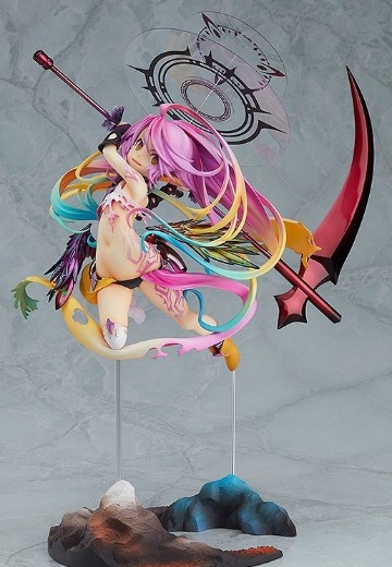 出自電影《NO GAME NO LIFE 遊戲人生 ZERO》,天翼種「吉普莉爾」化身為1/8比例模型。將外表年幼,卻露出冷酷笑容,彷彿襲擊過來的震撼姿態,製成色彩鮮豔的模型。纖細的身軀舉起巨大鐮刀,從腰際長出的翅膀,採用金屬色塗裝,還原那詭譎的反光模樣。頭髮與布料的造形展現漂浮感,為了還原作品的獨特色澤,連細節也製作得十分講究。敬請將這款吉普莉爾帶回家鑑賞!
