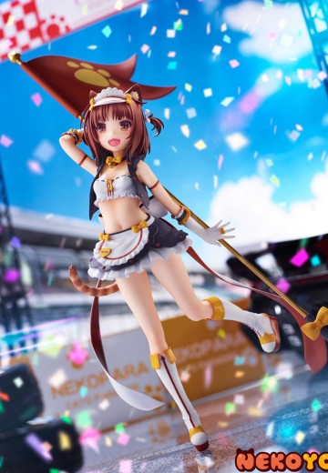 出自超人氣電腦遊戲《貓娘樂園》,曼赤肯貓的長女貓娘——紅豆以賽車女郎風貌化身為比例模型。原作者兼繪師的SAYORI親自製作原型,角色的樣貌以360度完整重現!背心與裙子可自由穿脫,能依個人喜好搭配擺飾!