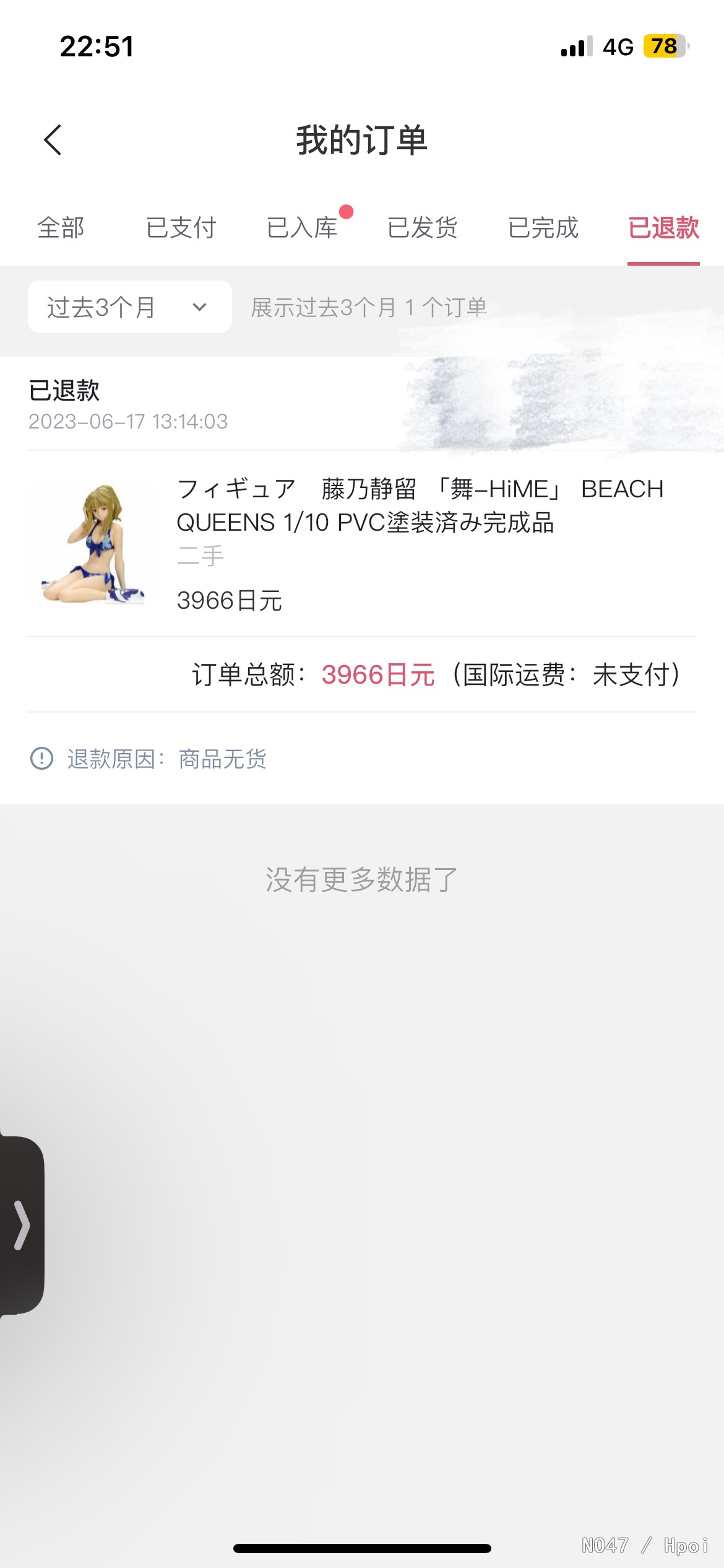 谢谢你骏河屋,6月7号下单,6月17号砍单了,原因是无货,谢谢你赶在618前退款,让我的预算又充裕了一点。我承认两百块是我捡漏价找到的这款,但是十天了才给我说没货退款是不是有点假了哎,手办消费者是真的被动啊,涨价是市场行为我没办法,延期是厂子的说了算想延期多久就多久,好多还很难退定金,现在连现货都买不到了,十天才能确定无货,空挂十天是不是有点过分了?