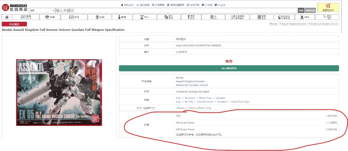 灌水讨论其实可以借助mandarake估算amiami国际站的运费