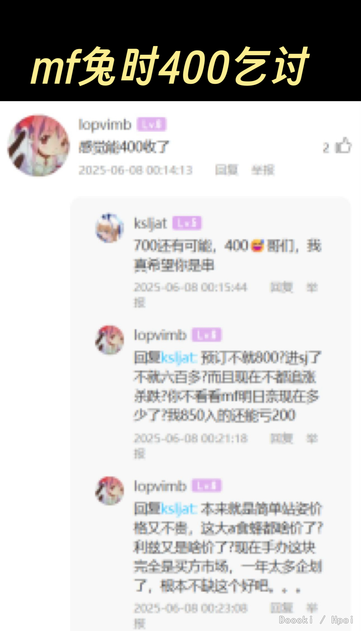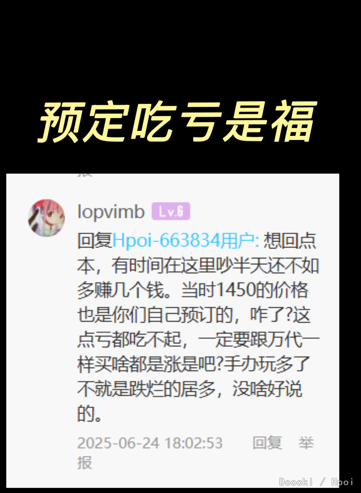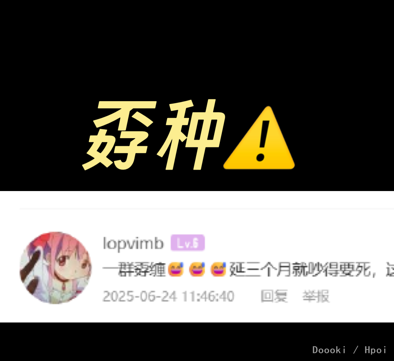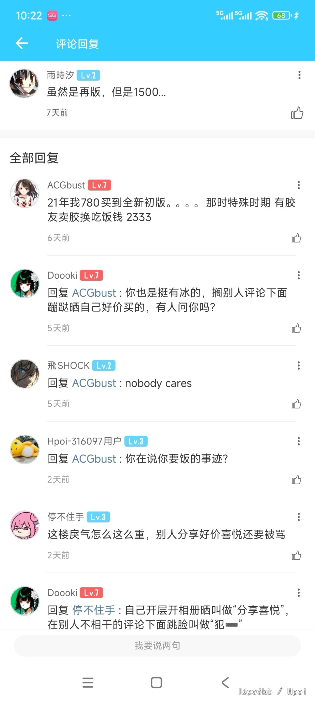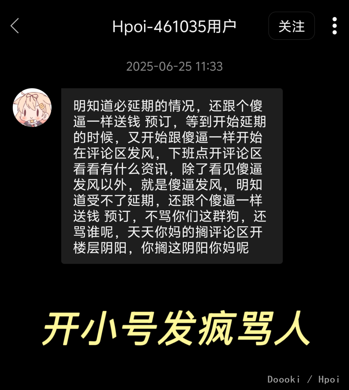 不是为了你好兄弟acg开帖喷我吗,我最多就是戾气大我认了我改改(麻烦善用屏蔽功能)。可宁@lopvimb这神人发言可太多了吧? 一级号不准发言,延期不准喷,喷延期就是孬种,预定亏了活该,顺手还乞讨一下,buff叠满咯。 快别给你好兄弟acg“贴脸大帝”撑腰了,一群神人