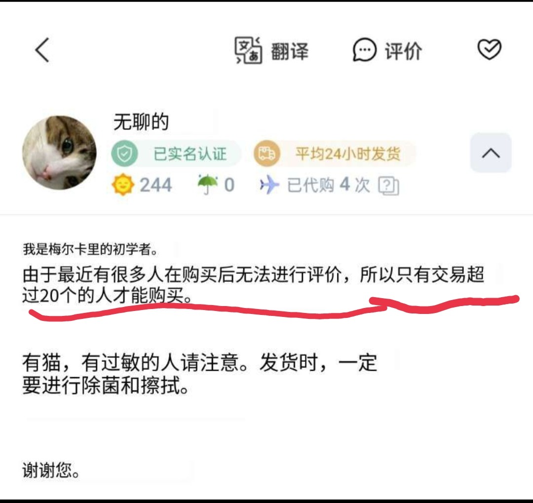已经拍下商品了, 才看到卖家主页简介 。 这是任意门代切账号拍下之后不给人家卖家评价导致的吗? 看这个卖家已经代购四次应该有经验了 。 超过20次购买是什么意思 ,任意门代切账号能有20次购买吗 已经拍下了 他会不发货或者取消交易吗