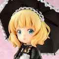 来自动画《请问您今天要来点兔子吗? BLOOM》,在咖啡厅「Fleur du lapin」中工作的「纱路」身穿哥特萝莉服登场! 身穿以哥特萝莉独有的黑色为基调的服装,左手将裙子掀子的她,让人感受到和身穿校服的她截然不同的成熟氛围。 以毛线编织而成的服装,带荷叶边的裙子,伞的造形自不用说,连同细节部分
