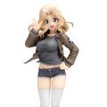 パンツァーは人生、人生はパンツァー♪ 戦車大好き「秋山優花里」がおなじみの敬礼ポーズで立体化! Ⅳ号戦車D型改(F2型仕様)のキューポラに座り、元気いっぱいな笑顔を見せています。 ユニークなシルエットのふわふわとした髪も丁寧に造形しており、思わず撫でたくなる可愛らしさ。 脇に抱えた真鍮特有の鈍い輝き