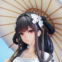 逸仙轻执长伞,绯红眼眸含情凝望,乌黑发丝层次分明,双髻缀以素雅白花,温婉气韵浑然天成。素色薄衫搭配清蓝飘带,衣褶自然舒展,半透材质精巧还原面料轻薄质感。 实木长凳、雕花高几,搭配红梅盆景与青瓷赏瓶,独具韵味的国风场景与逸仙的柔美身姿,共同营造此刻雅致氛围。 “值此佳节, 有幸与指挥官共赏一片风景,