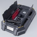 为了贴合X11给予大众的印象色调,联名款以《诸神之熵》-雷神的外观基础,重新设计了整体的配色。该设计采用了黑白为主色调,通过单色系的搭配,让整体显得更加稳重,有未来感。而全身的点缀色透明件,则采用了柳绿色作为身上的唯一有色系。除了本次胶件颜色调整外,水贴也做出大胆不对称设计。将左边部分水贴花纹,重新