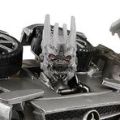 《蝙蝠侠:黑暗骑士崛起》中贝恩劫持并重新涂装的迷彩蝙蝠战车,套件附带同比例蝙蝠摩托,还原载具追逐的精彩片段 ▼舱门不同幅度开启,尾翼具备可动,配备7组LED发光灯效及一个推进器特效件 ▼开创性结构设计 蝙蝠摩托可收纳至迷彩蝙蝠车底部 ▼可搭配1:12比例人偶进行把玩展示