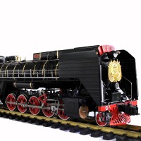 1.材料:全铜 2.比例:1/32 3.长宽高:850mm*109mm*153mm 4.轨距:G比例,轨距45mm 5.最小轨道半径:1175mm 6.动力:电动 7.电压:最大24VDC 8.轮式:2-10-2 9.净重:7.02KG 10.其他配备及功能:可发光前后方向灯