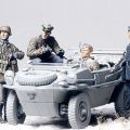 人形4体入り ※シュビムワーゲンは付属しません。 キューベルワーゲンやシュビムワーゲンなど車輛モデルと組み合わせて情景展開を楽しめる、第二次大戦後期のドイツ軍戦車部隊の兵士の人形セットです。車輛の助手席ドアに腰をかける野戦指揮官や着座姿勢のドライバー、前方を指し示す立ちポーズの擲弾兵リーダー、そして