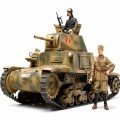 全長=143 mm 写真はキットを組み立て、塗装したものです 【 第二次大戦のイタリア軍の主力戦車 】 第二次大戦中、イタリア軍の主力戦車となったのがM13/40です。リベット接合式の車体やリーフスプリングに支えられたボギー式の足まわりなど手堅い設計で、イタリア初の動力旋回式砲塔に長砲身47mm戦車