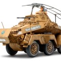 全長=193 mm 写真はキットを組み立て、塗装したものです 【 広大な砂漠で任務を果たした戦車部隊の目 】 第二次大戦前半、ドイツ軍の偵察部隊の中心となった大型装甲車がSd.Kfz.231シリーズです。中でもSd.Kfz.232は遠距離用の無線機を搭載し、車体上部に特徴的な大型フレームアンテナを装