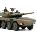 全長=176 mm 写真はキットを組み立て、塗装したものです 【 革新の俊足装甲車を手頃なサイズで 】 2016年度に調達が開始された陸上自衛隊の装輪装甲車が16式機動戦闘車です。高い機動力で目的地にいち早く駆けつける即応機動連隊の要として開発されました。8輪の大径タイヤを装備した車体に570馬力の