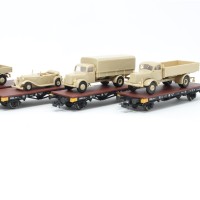 货号 种类 种类 车型 车号体系 车号 用户 时期 其他 L221201 平板车 重载运输车 未知 德国联邦铁路 III L221202 平板车 重载运输车 未知 德国铁路(民主德国) III L221203 平板车 重载运输车 未知 德国铁路 II L221204 平板车 重载运输车 未知 德国联