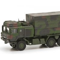 452679500官网介绍: MAN公司在1977年至1985年间共生产了3500辆MAN KAT 1卡车。它配备了带有废气涡轮增压器和中冷器的道依茨发动机。这些卡车被用作平板车、侦察无人机运输车、LARS轻型火箭炮系统运输车、集装箱运输车以及三向翻斗车。